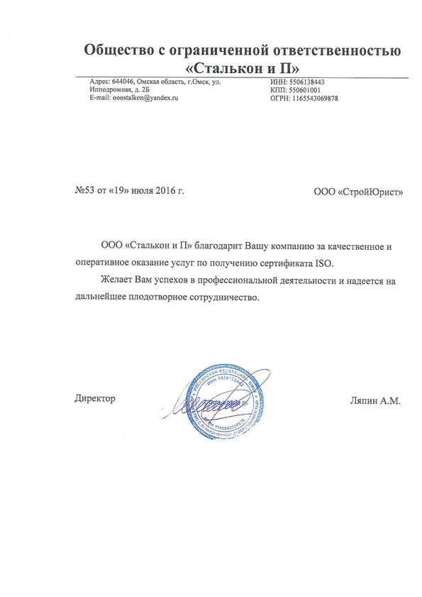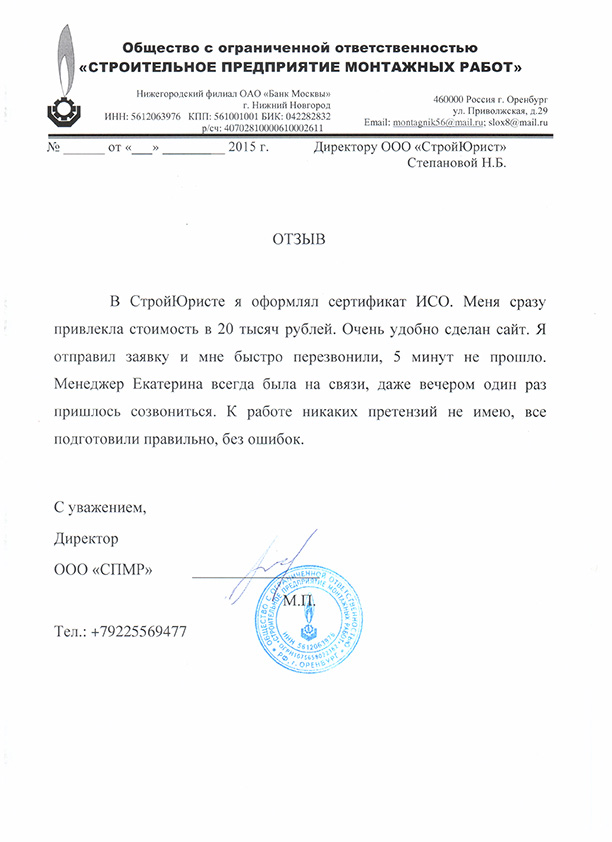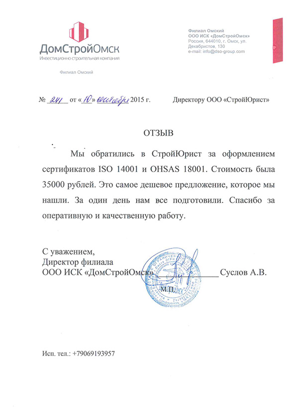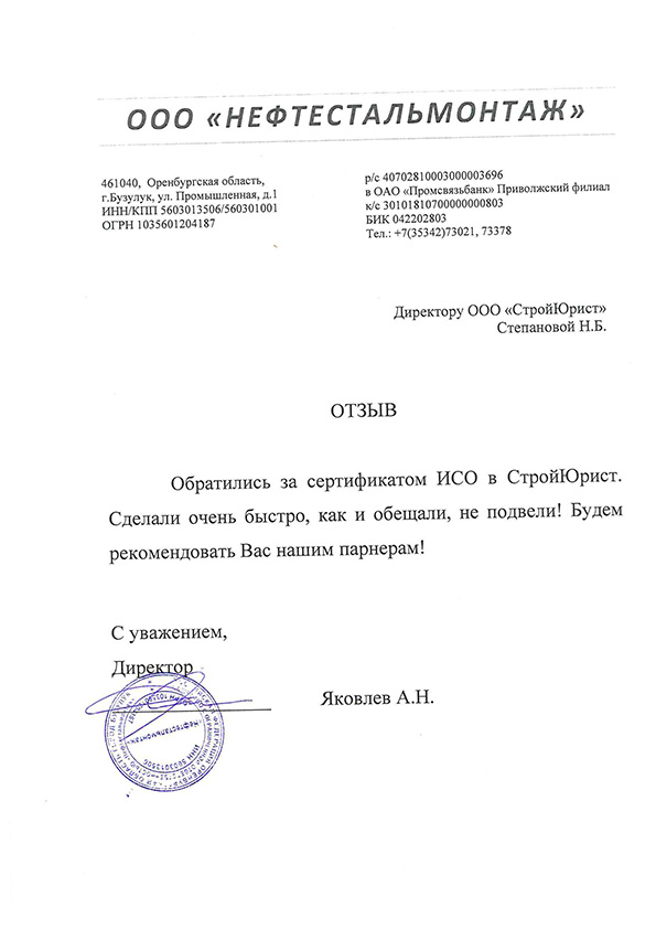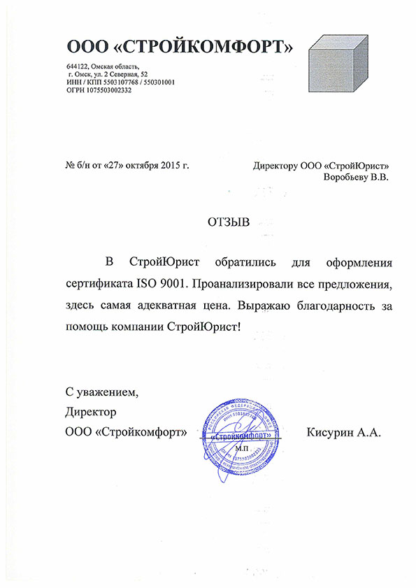 Отзывы клиентов "СтройЮрист" по ISO в Раменском