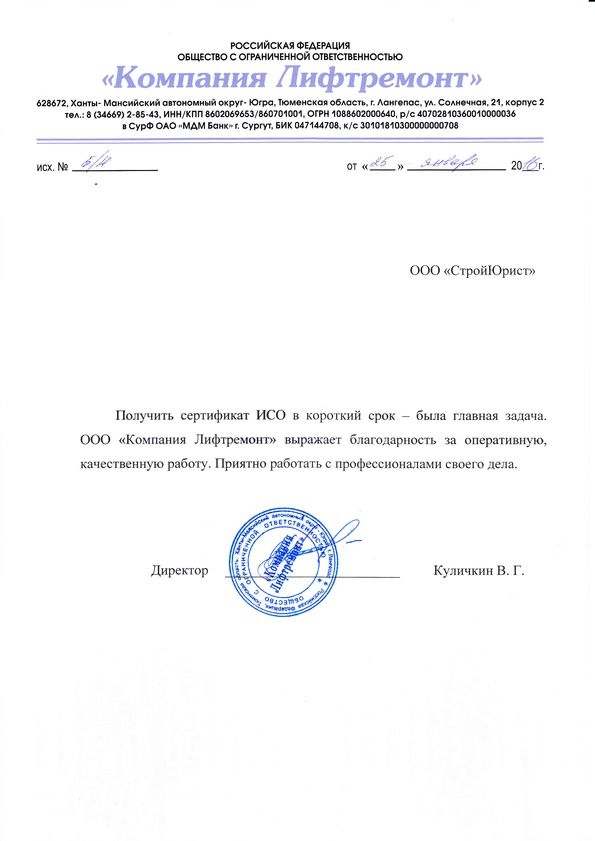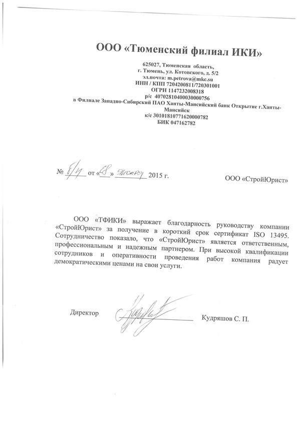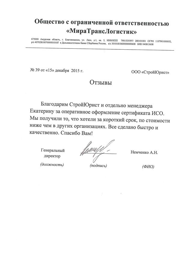Отзывы клиентов "СтройЮрист" по ISO в Раменском