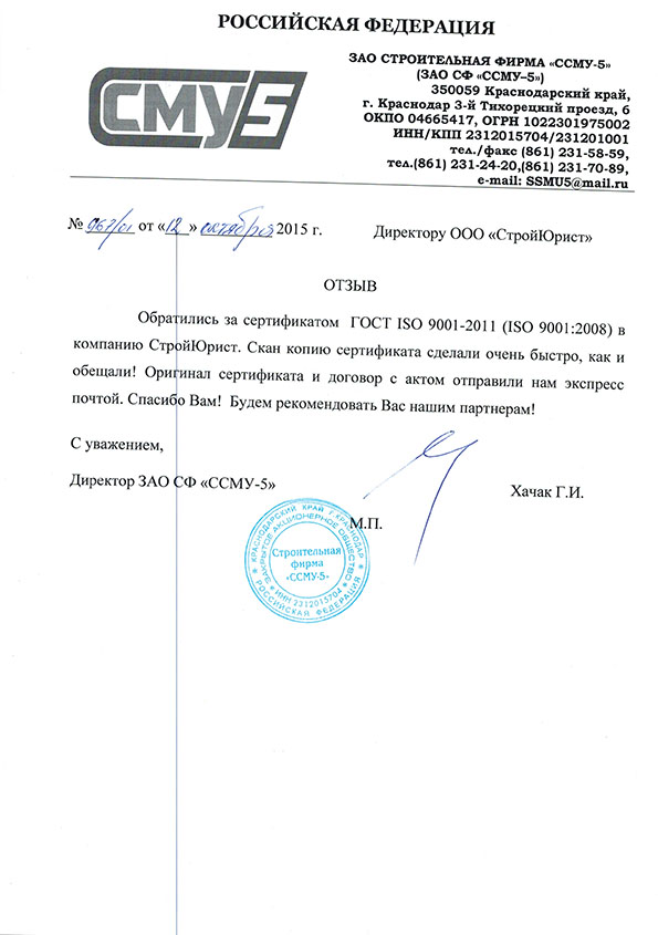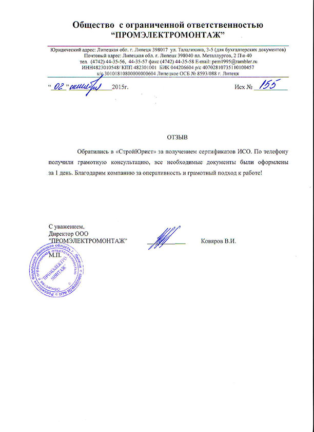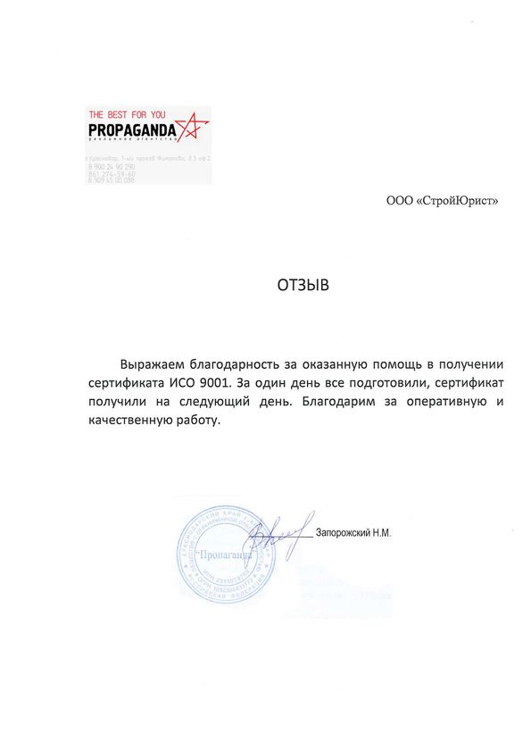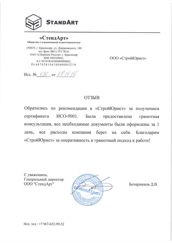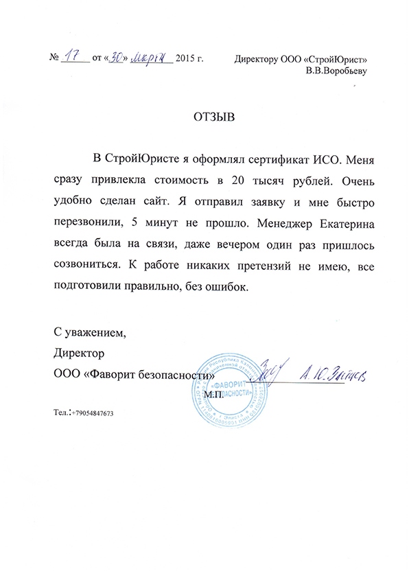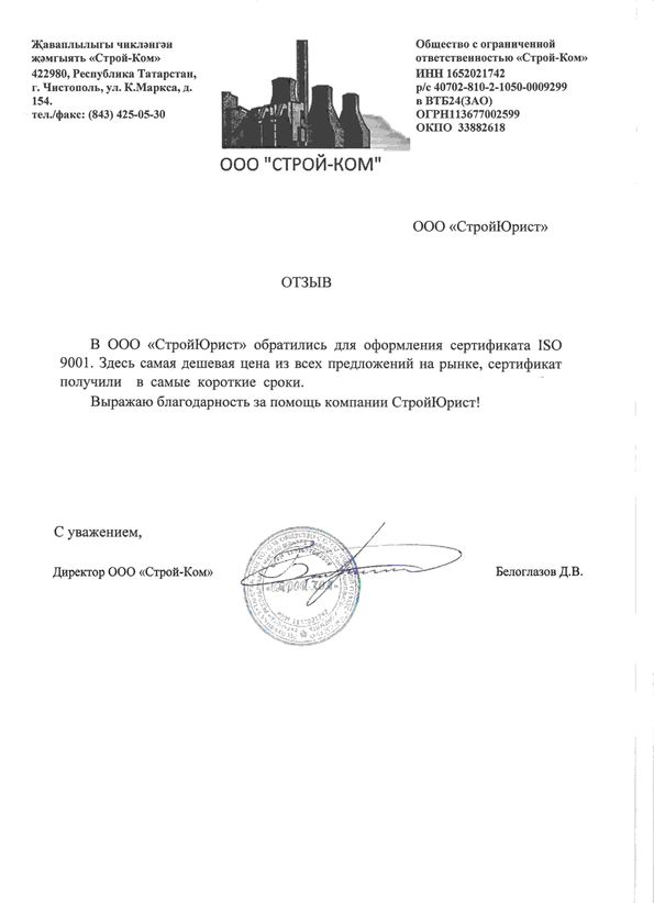 Отзывы клиентов "СтройЮрист" по ISO в Раменском