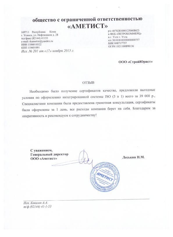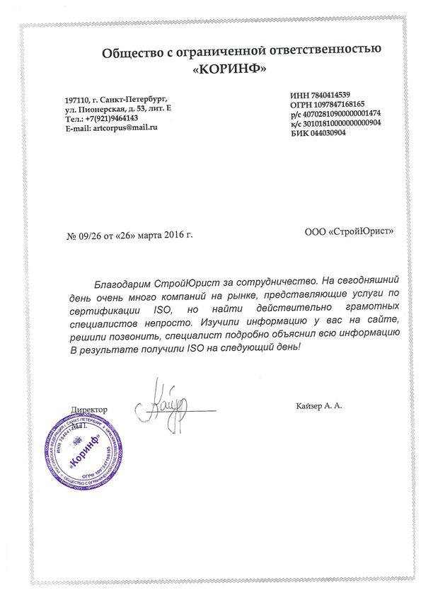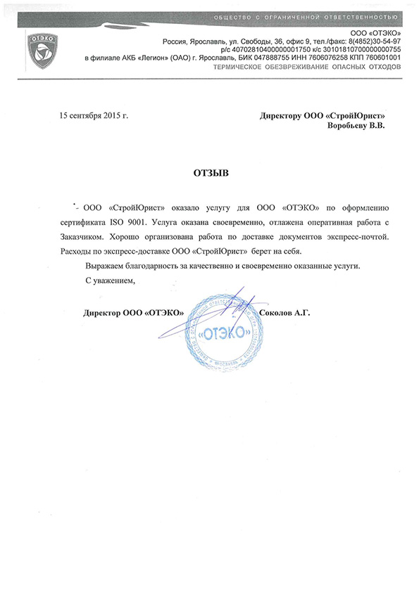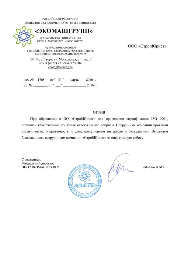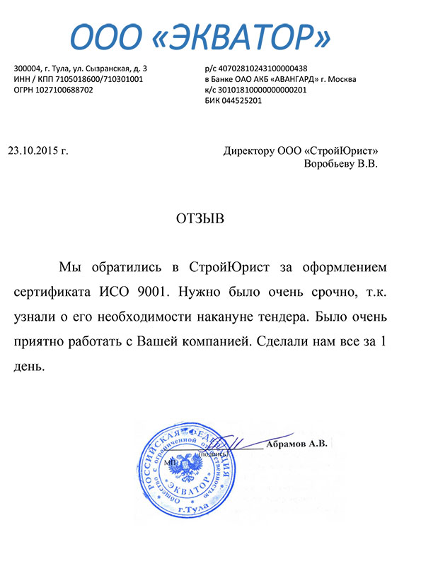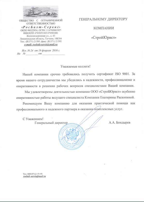 Отзывы клиентов "СтройЮрист" по ISO в Раменском