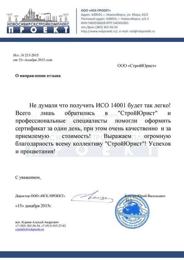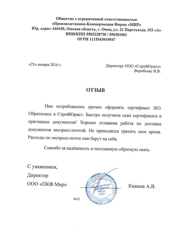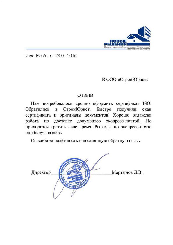 Отзывы клиентов "СтройЮрист" по ISO в Раменском