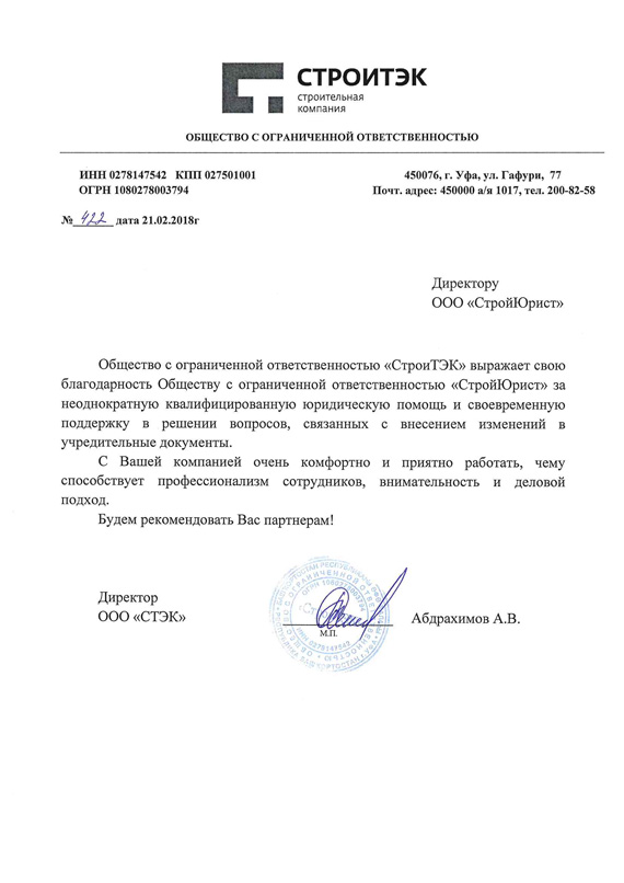 Отзывы клиентов "СтройЮрист" по регистрации фирм в Раменском