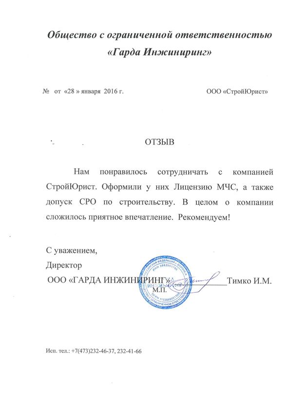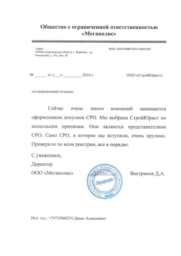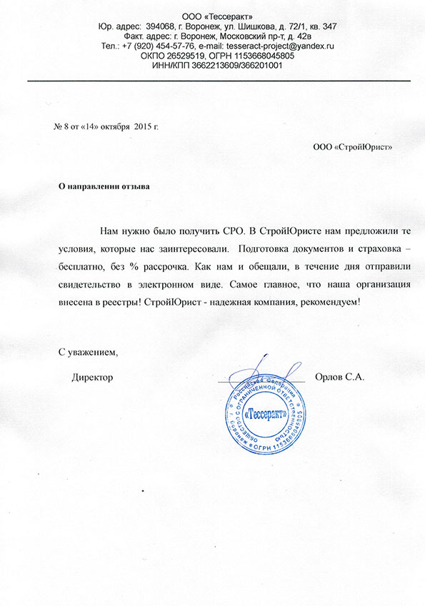 Отзывы клиентов "СтройЮрист" по вступлению в СРО в Раменском