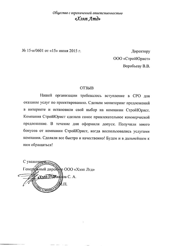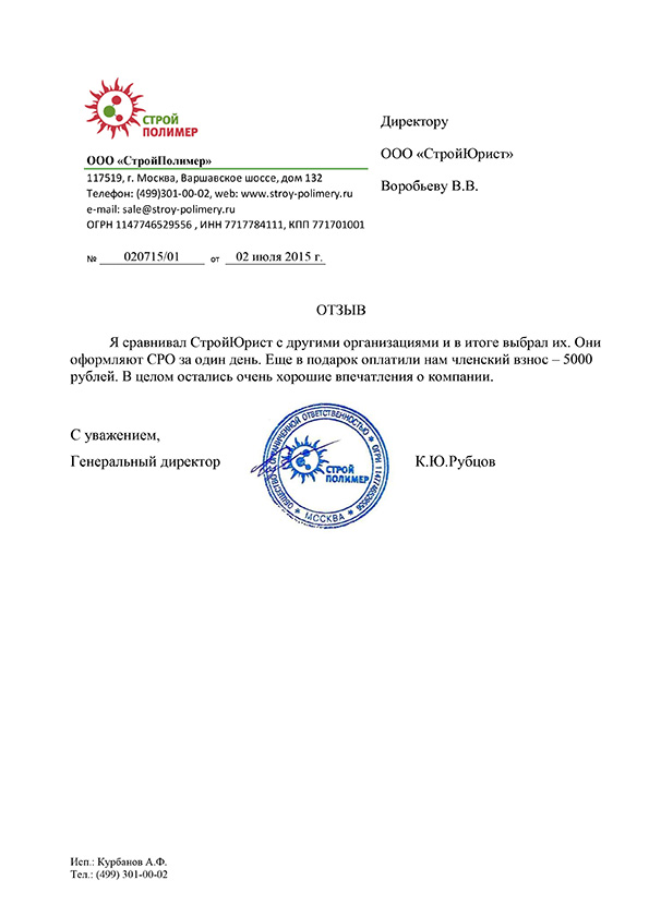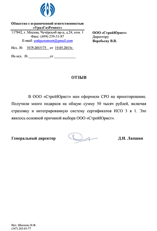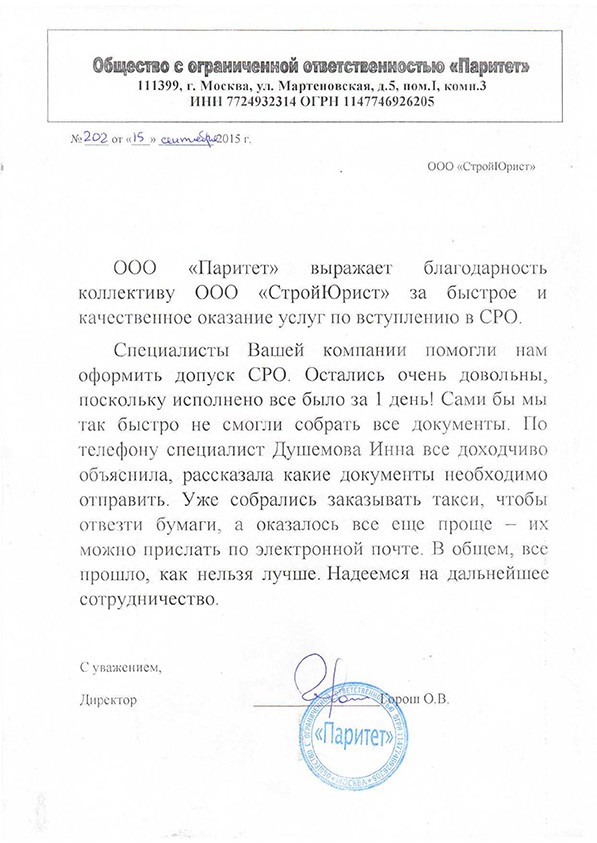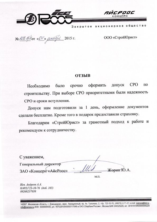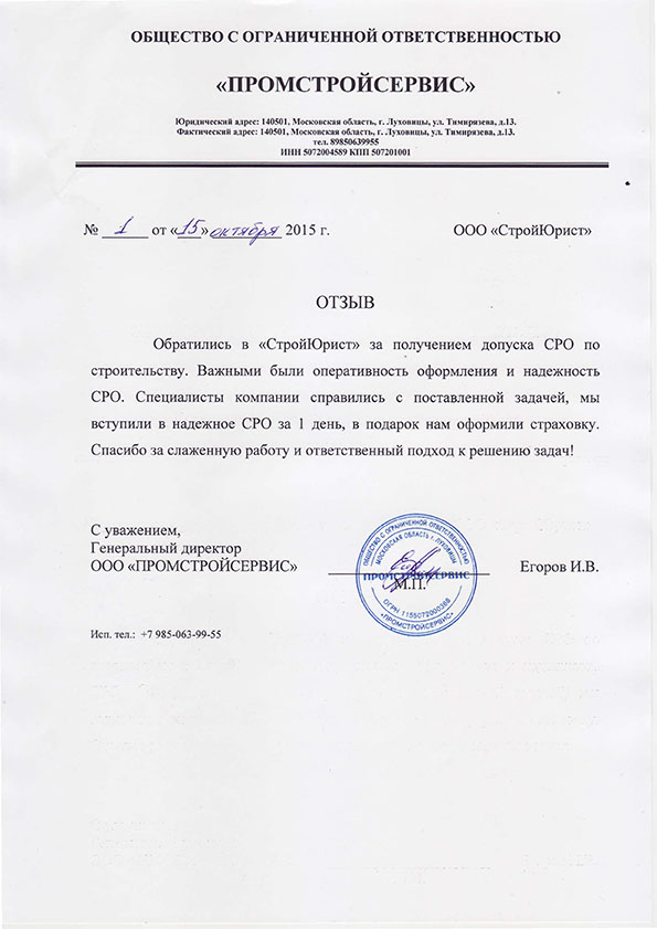 Отзывы клиентов "СтройЮрист" по вступлению в СРО в Раменском
