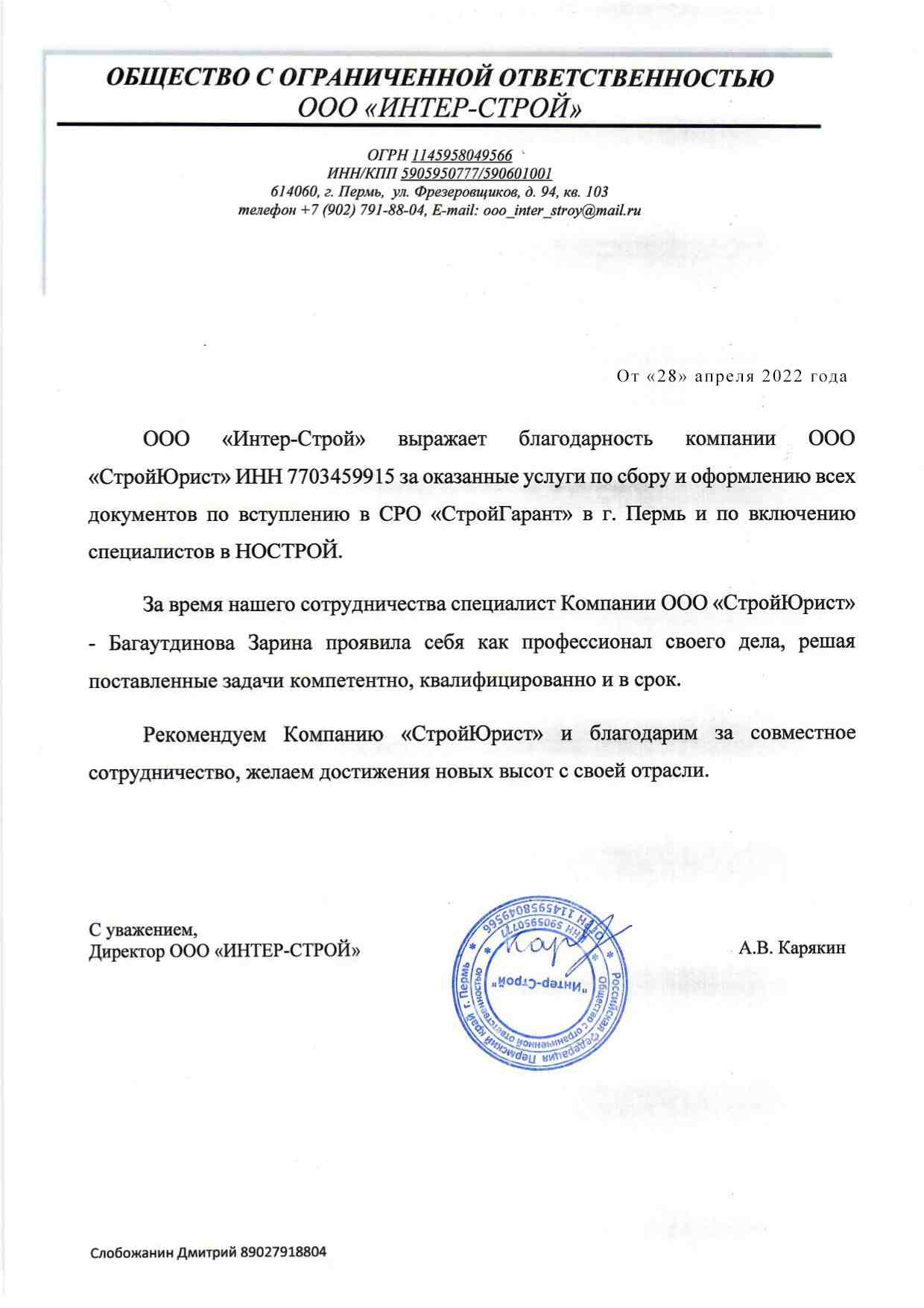 Отзывы клиентов "СтройЮрист" по вступлению в СРО в Раменском