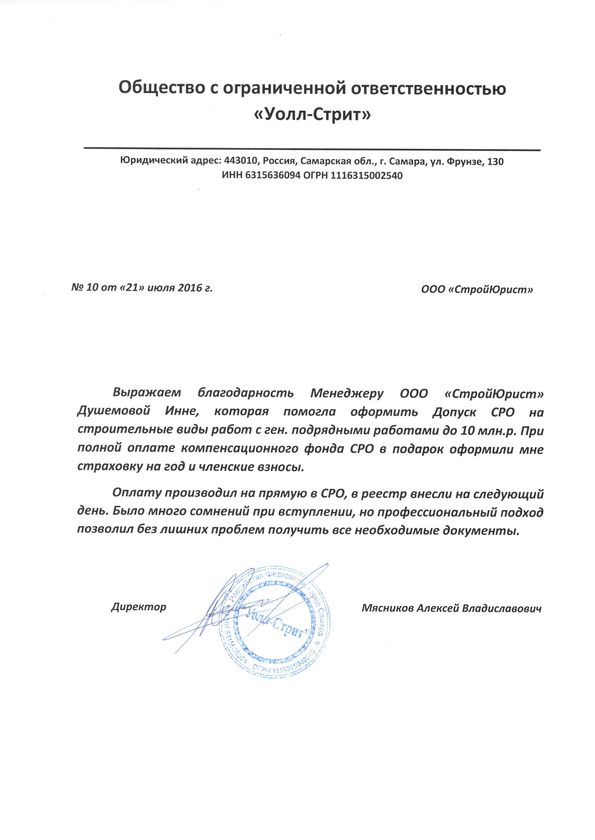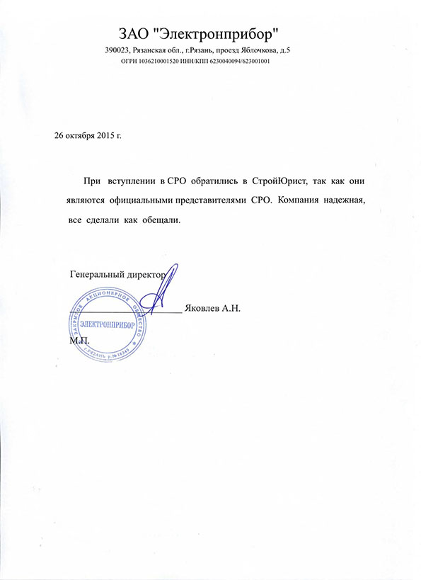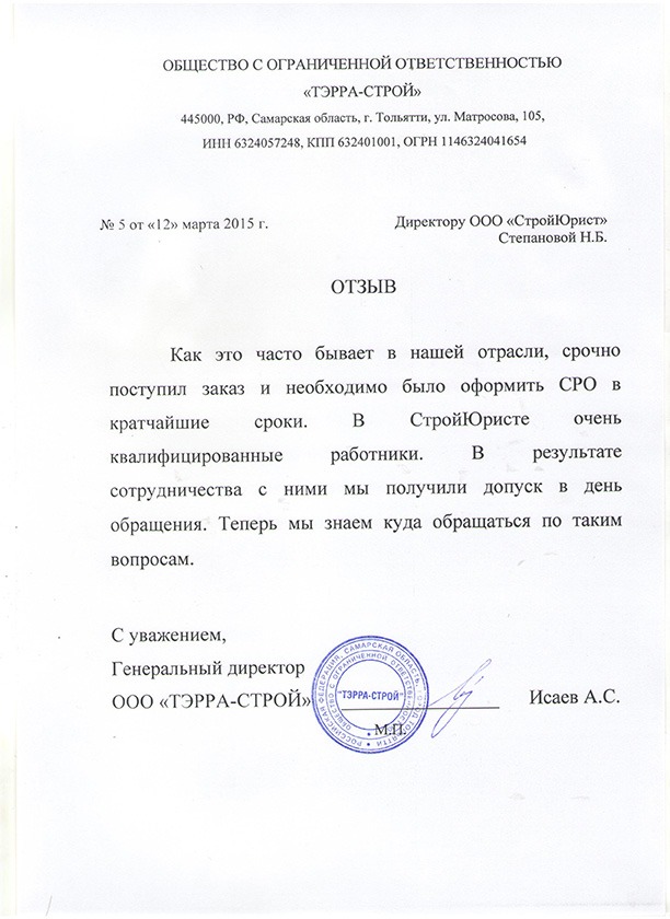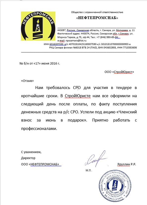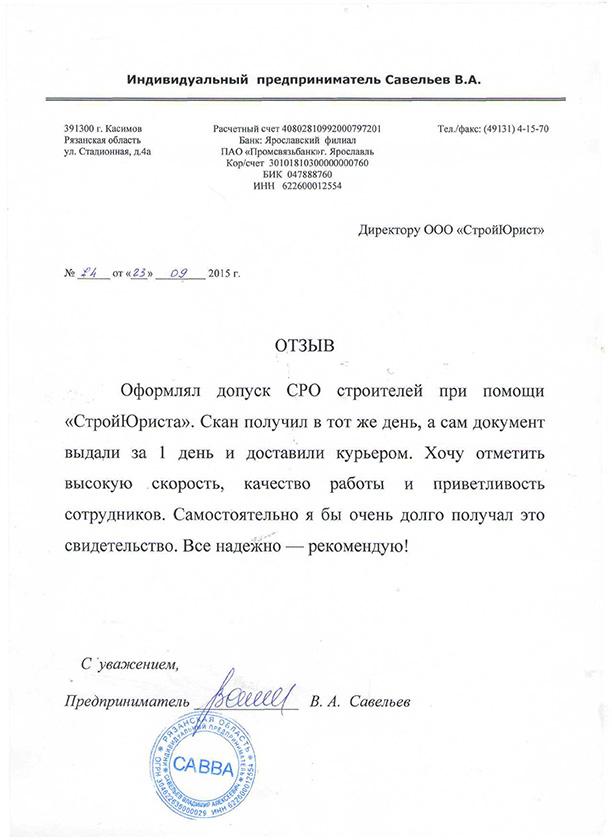 Отзывы клиентов "СтройЮрист" по вступлению в СРО в Раменском