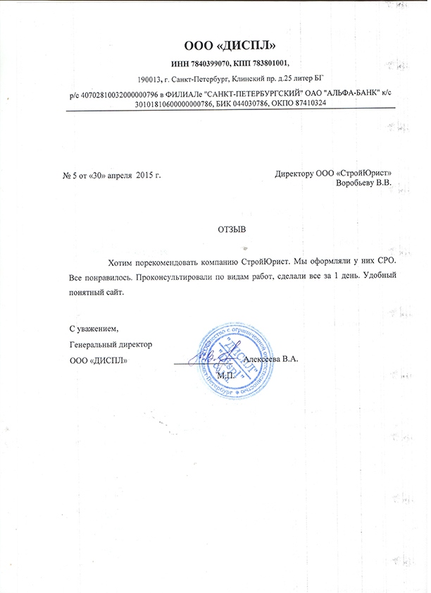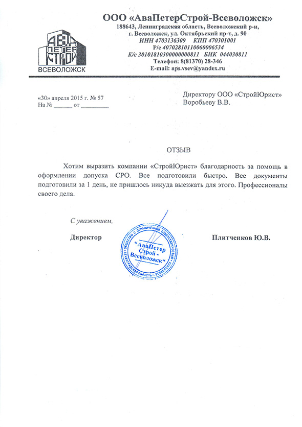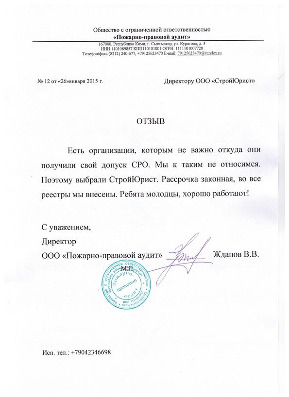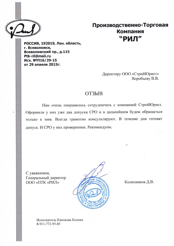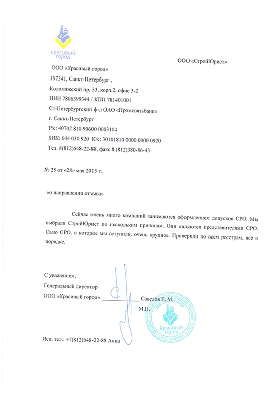 Отзывы клиентов "СтройЮрист" по вступлению в СРО в Раменском