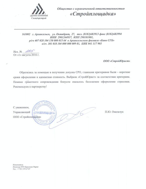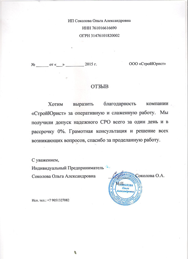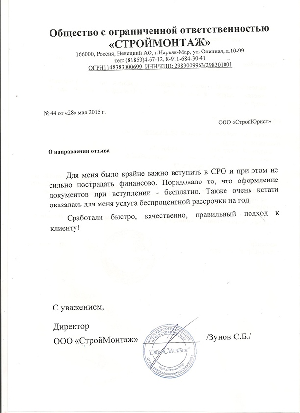 Отзывы клиентов "СтройЮрист" по вступлению в СРО в Раменском