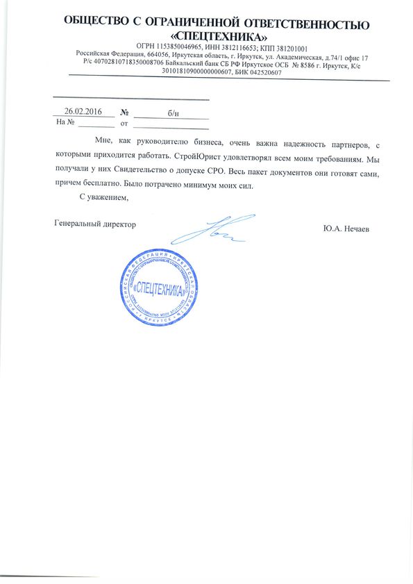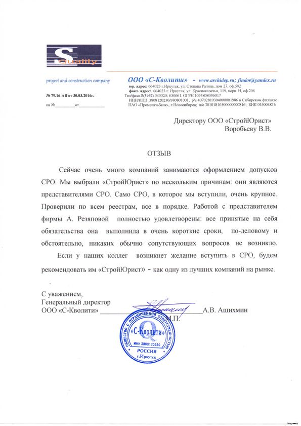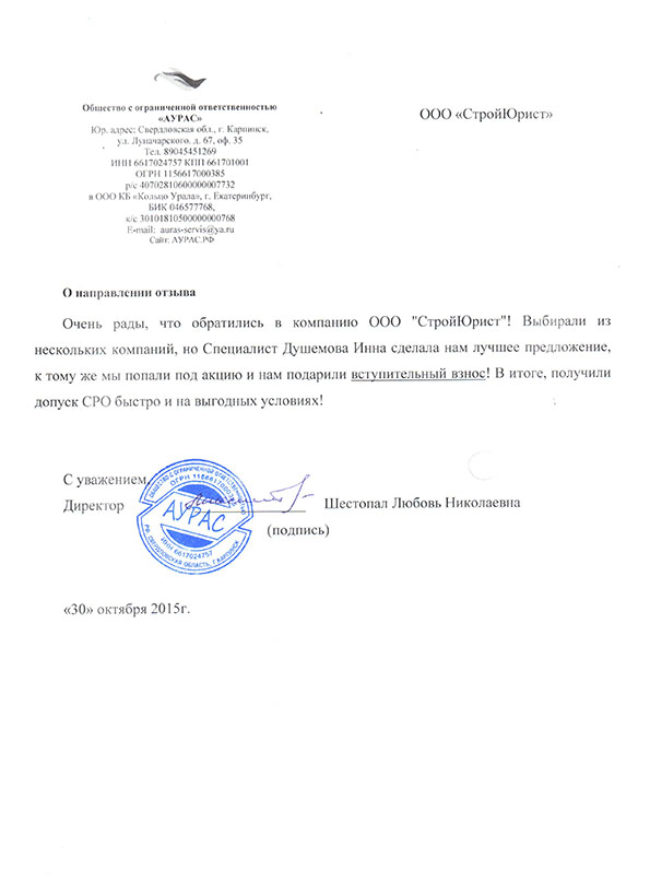 Отзывы клиентов "СтройЮрист" по вступлению в СРО в Раменском
