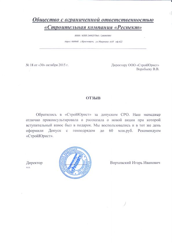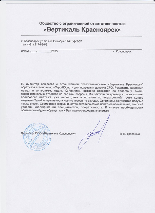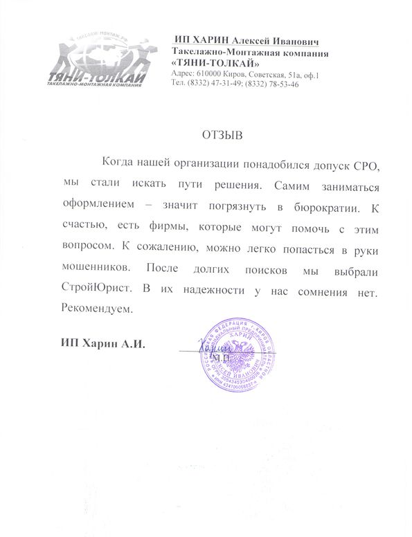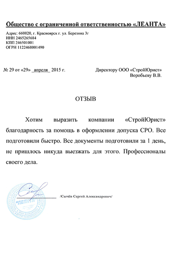 Отзывы клиентов "СтройЮрист" по вступлению в СРО в Раменском