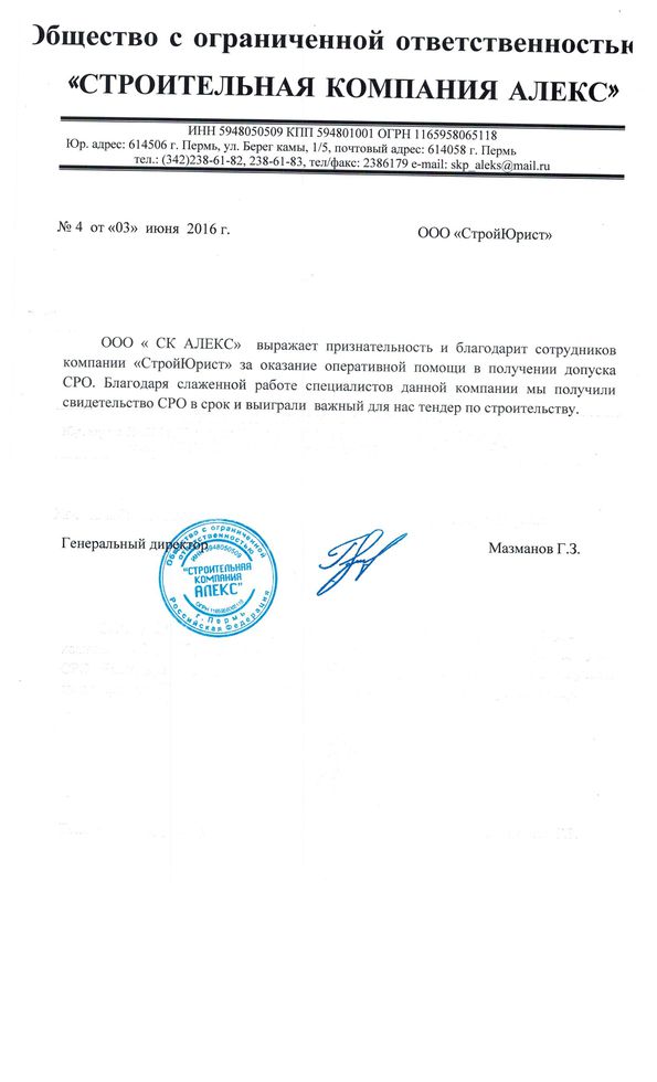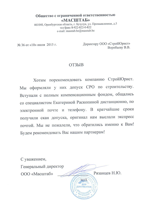 Отзывы клиентов "СтройЮрист" по вступлению в СРО в Раменском