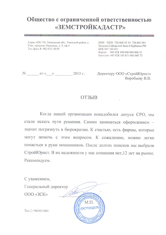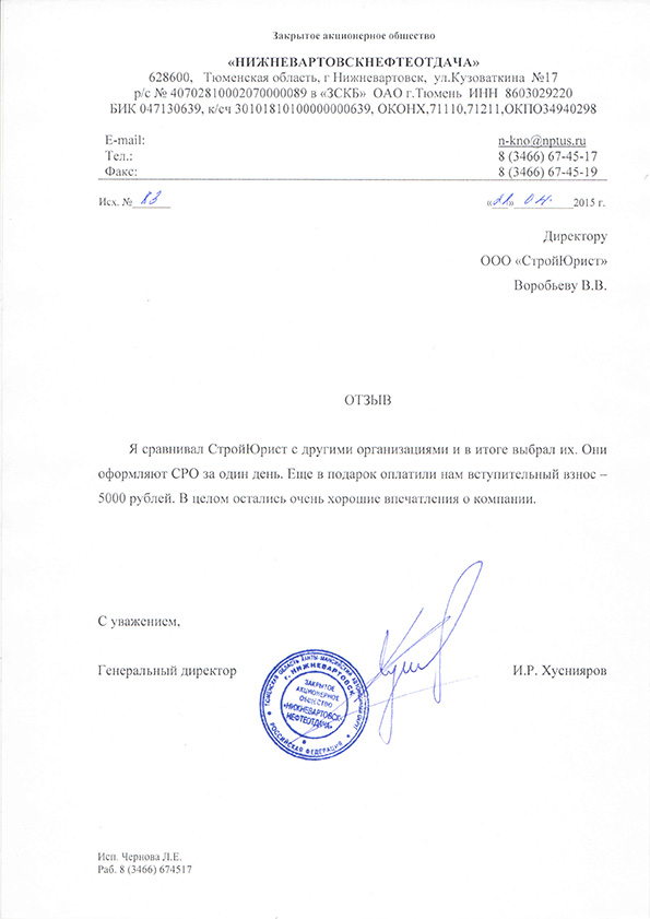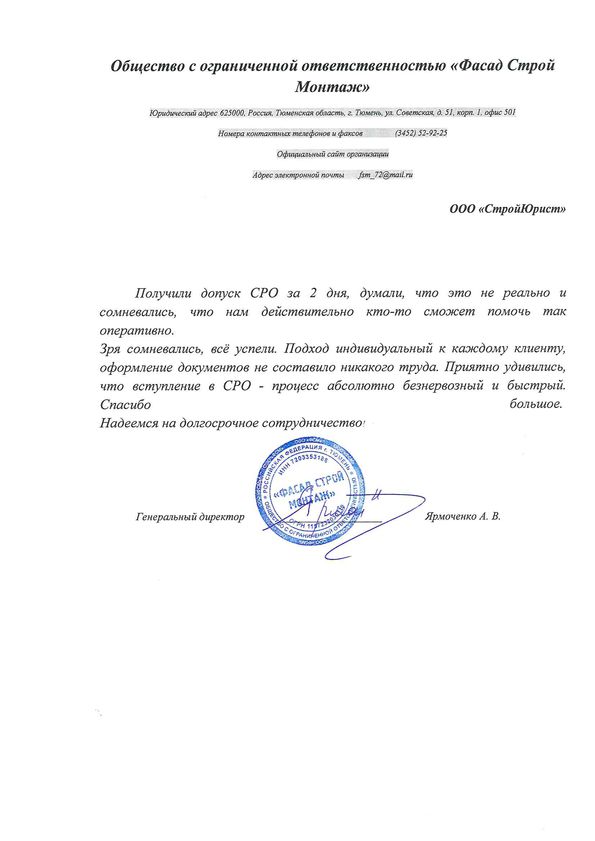 Отзывы клиентов "СтройЮрист" по вступлению в СРО в Раменском
