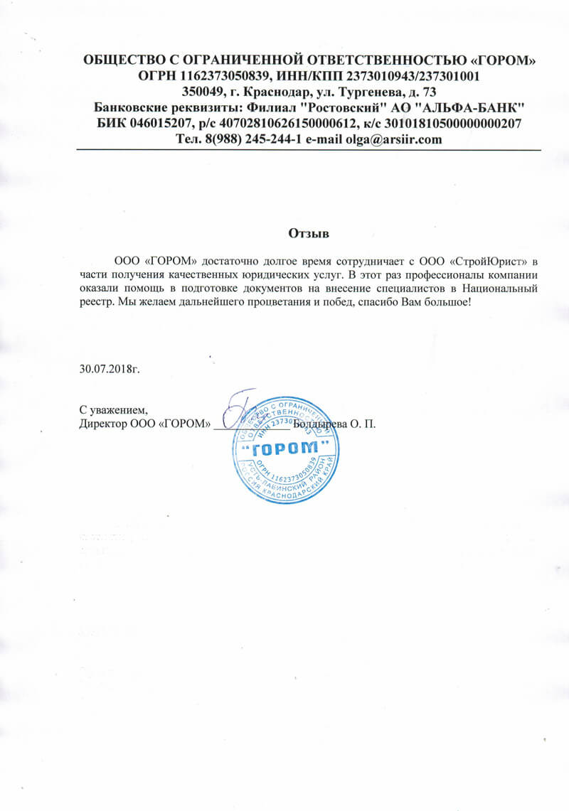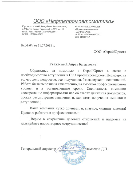 Отзывы клиентов "СтройЮрист" по вступлению в СРО в Раменском